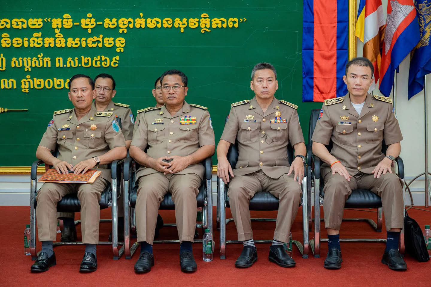 ថ្លែងក្នុងឱកាសអញ្ជើញក្នុងកិច្ចប្រជុំបូកសរុបលទ្ធផល នៃការអនុវត្តគោលនយោបាយ ភូមិ-ឃុំសង្កាត់ មានសុវត្ថិភាព ប្រចាំនព្វមាស(៩ខែ) ឆ្នាំ២០២៥ និងលើកទិសដៅអនុវត្តបន្ត នៅខេត្តតាកែវ នៅសាលប្រជុំរដ្ឋបាលខេត្ត នៅរសៀលថ្ងៃទី១៣ ខែតុលា ឆ្នាំ២០២៥ ពិធីនេះក៏មានការចូលរួមពីឯកឧត្តម វ៉ី សំណាង អភិបាលខេត្តតាកែវ លោកអភិបាលរងខេត្ត កងម្លាំងទាំង៣ ប្រធានមន្ទីរជុំវិញខេត្ត អភិបាលក្រុង-ស្រុក អធិការនគរបាលក្រុង-ស្រុក មេឃុំចៅ-សង្កាត់ ប៉ុសិ៍្តនគរបាលរដ្ឋបាលទាំង១០០ រួមនឹងមន្រ្តីពាក់ព័ន្ធជាច្រើនរូបទៀត។