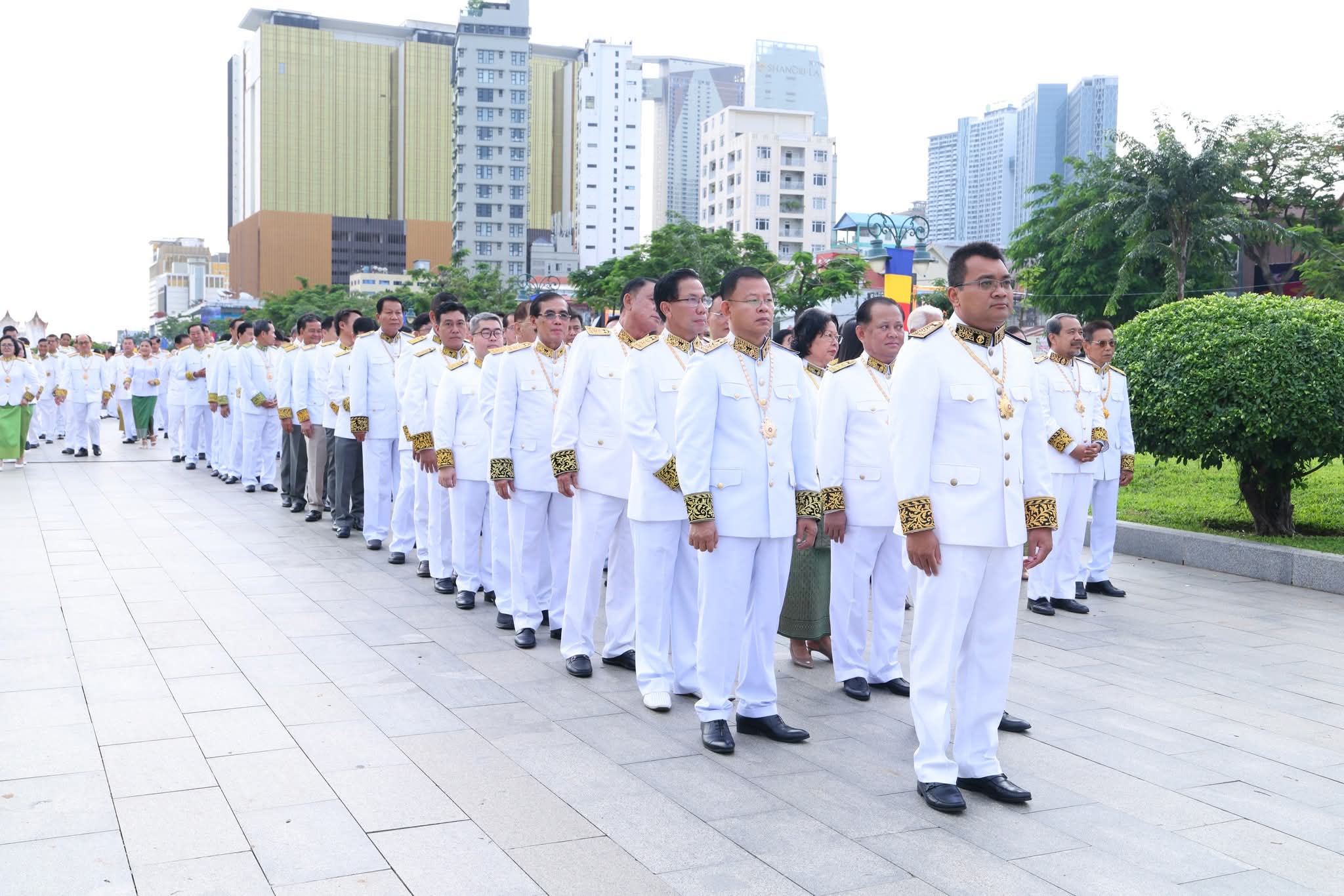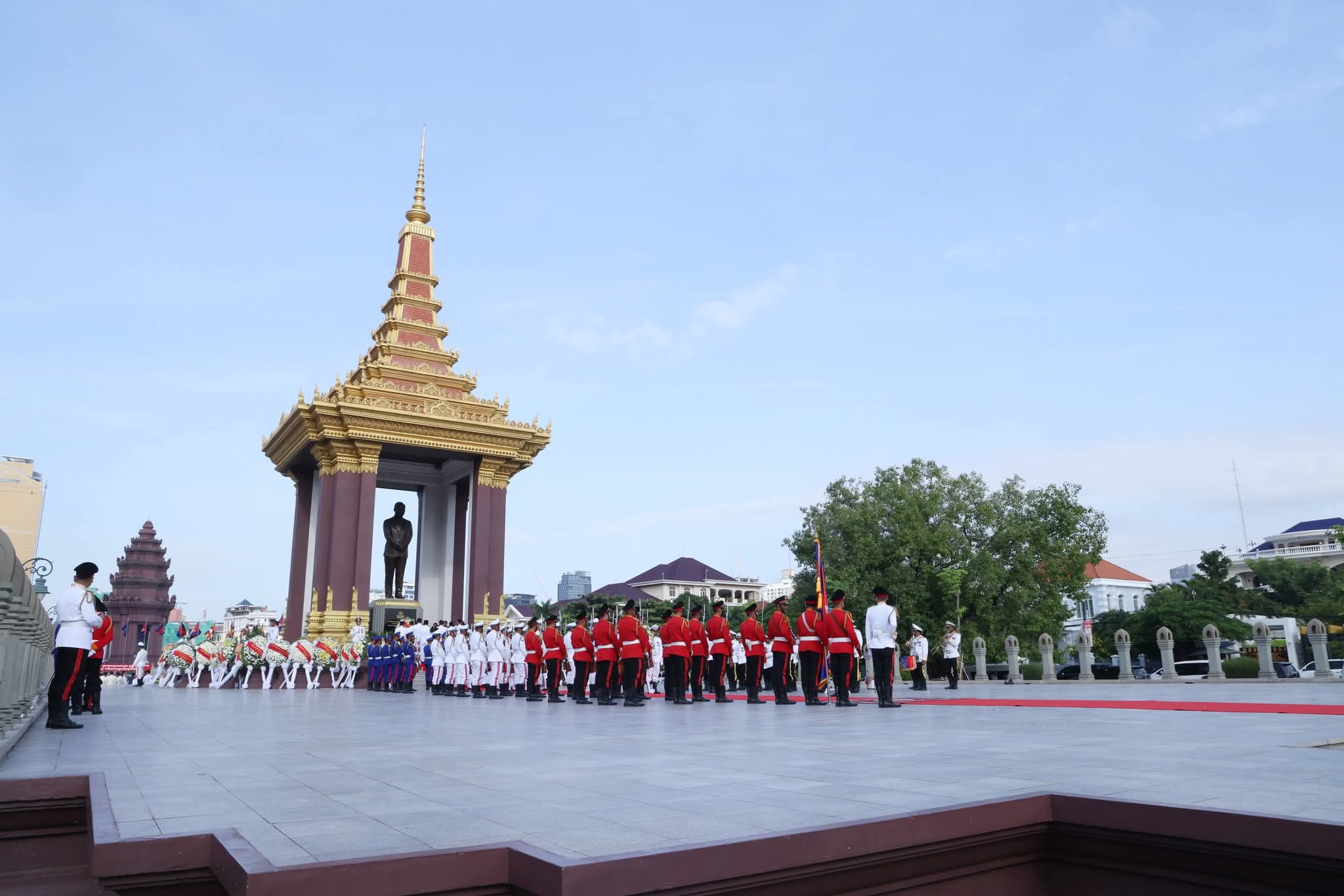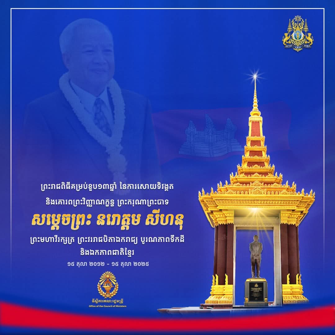 រាជធានីភ្នំពេញ៖ នាព្រឹកថ្ងៃពុធ ទី១៥ ខែតុលា ឆ្នាំ២០២៥ ឯកឧត្តម ប៉េង ពោធិ៍នា រដ្ឋមន្ត្រីក្រសួងសាធារណការ និងដឹកជញ្ជូន បានអញ្ជើញដឹកនាំប្រតិភូក្រសួងចូលរួមថ្វាយកម្រងផ្កាគោរពព្រះវិញ្ញាណក្ខន្ធ ព្រះករុណាព្រះបាទសម្ដេចព្រះនរោត្ដម សីហនុ ព្រះមហាវីរក្សត្រ ព្រះវររាជបិតា ឯករាជ្យ បូរណភាពទឹកដី និងឯកភាពជាតិខ្មែរ «ព្រះបរមរតនកោដ្ឋ» គម្រប់ខួប ១៣ឆ្នាំ នៅមណ្ឌបព្រះបរមរូប សួនច្បារខាងកើតវិមានឯករាជ្យ។